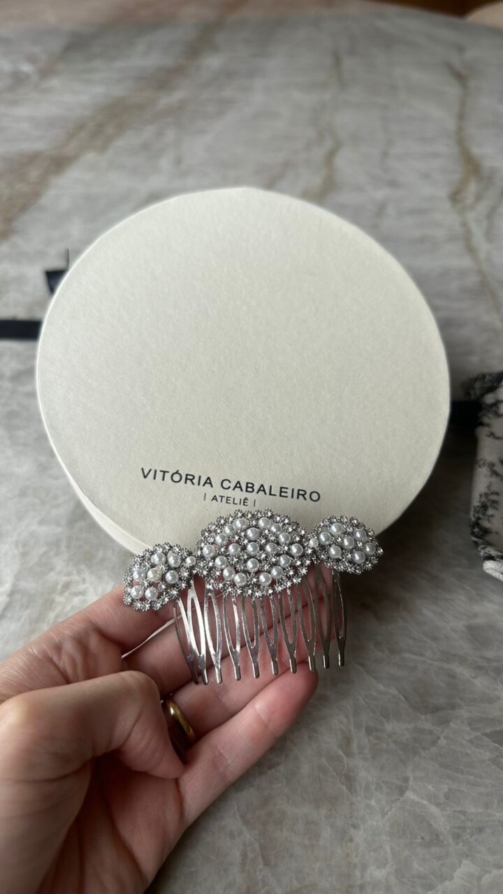 Produto: Acessórios Novo ou usado: Usado 1x Marca: Enfeite de Cabelo Onde comprou: Vitória Cabaleiro Valor pago: R$ 1.140,00 A venda por: R$ 570,00 Apresenta defeito ou desgaste: Não