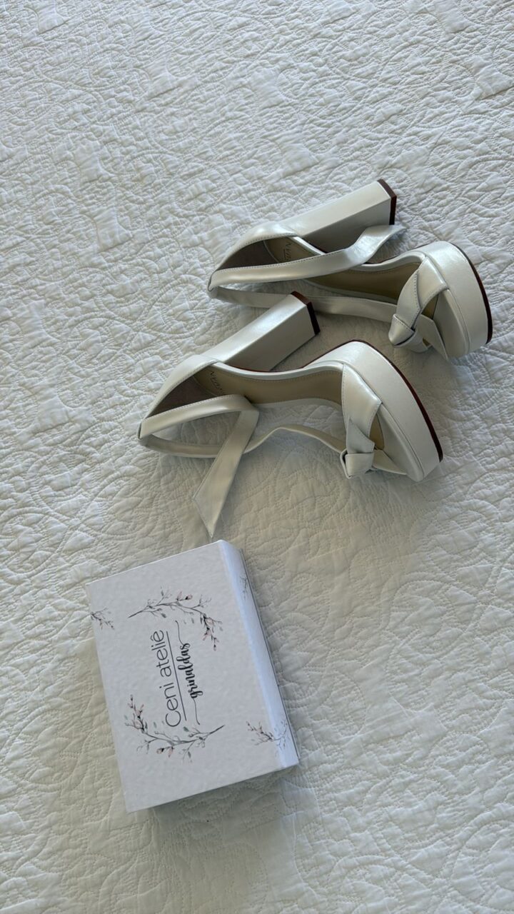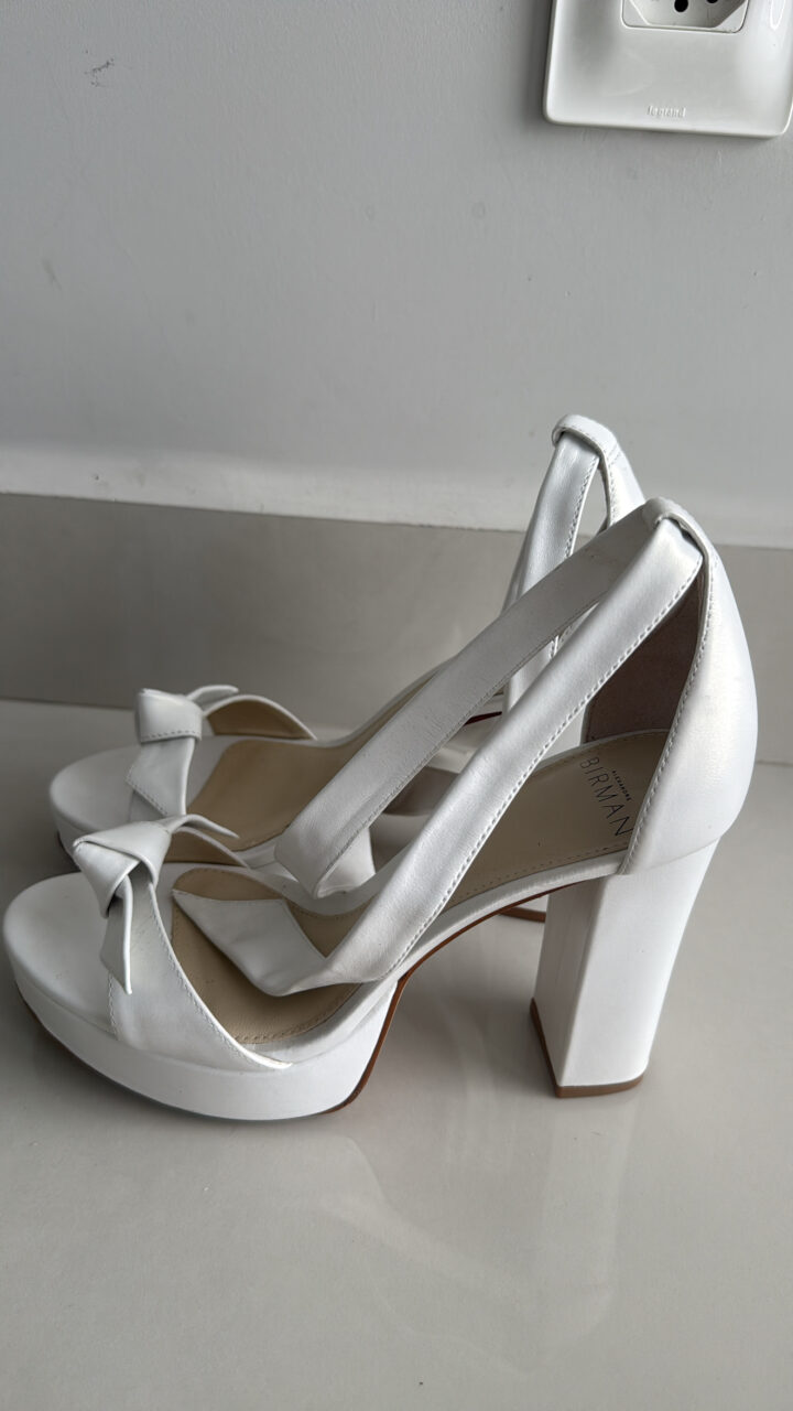 Apresenta defeito ou desgaste: Nenhum defeito, a sandália foi utilizada durante a cerimônia e parte da festa. TAM BR: 33