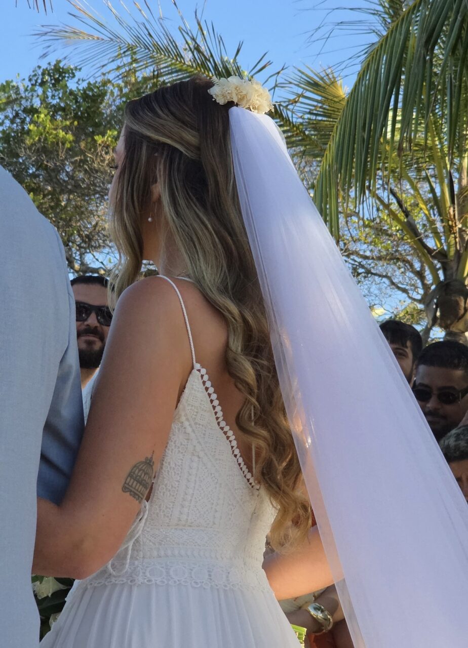 Produto: Acessórios Novo ou usado: Usado 1x Marca: Véu / Mantilha Onde comprou: Boutique de Novias – Barcelona Valor pago: R$ 800,00 A venda por: R$ 500,00 Apresenta defeito ou desgaste: Sem defeito