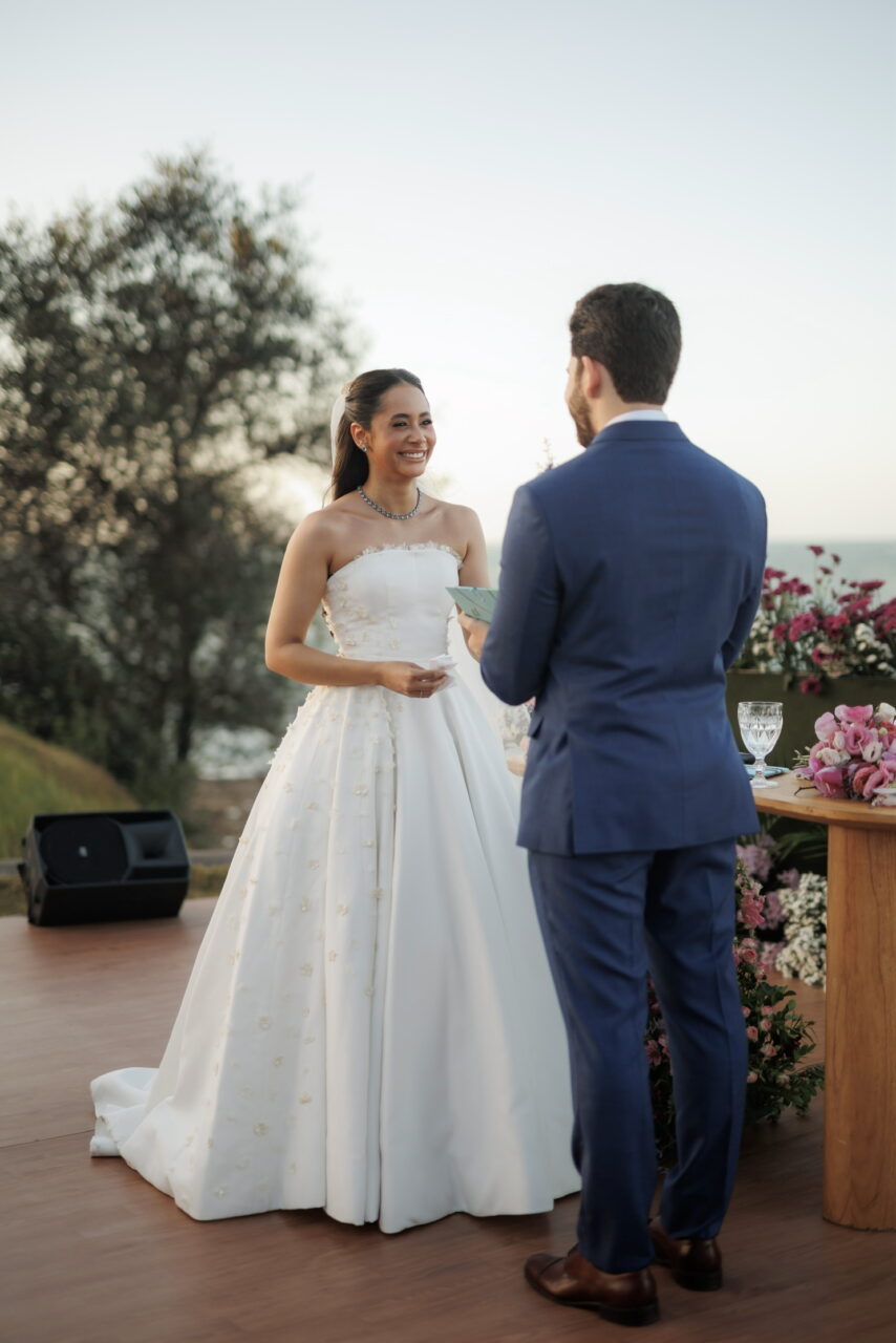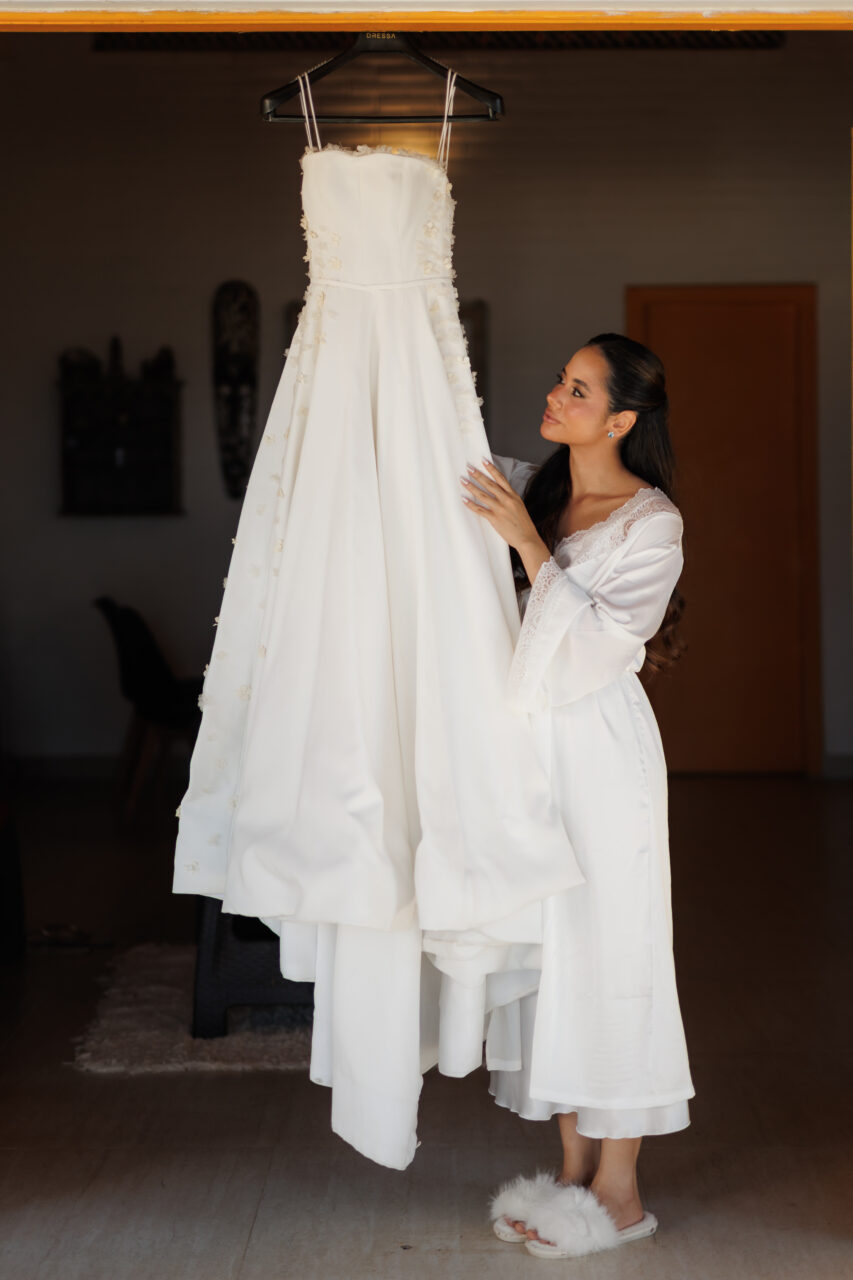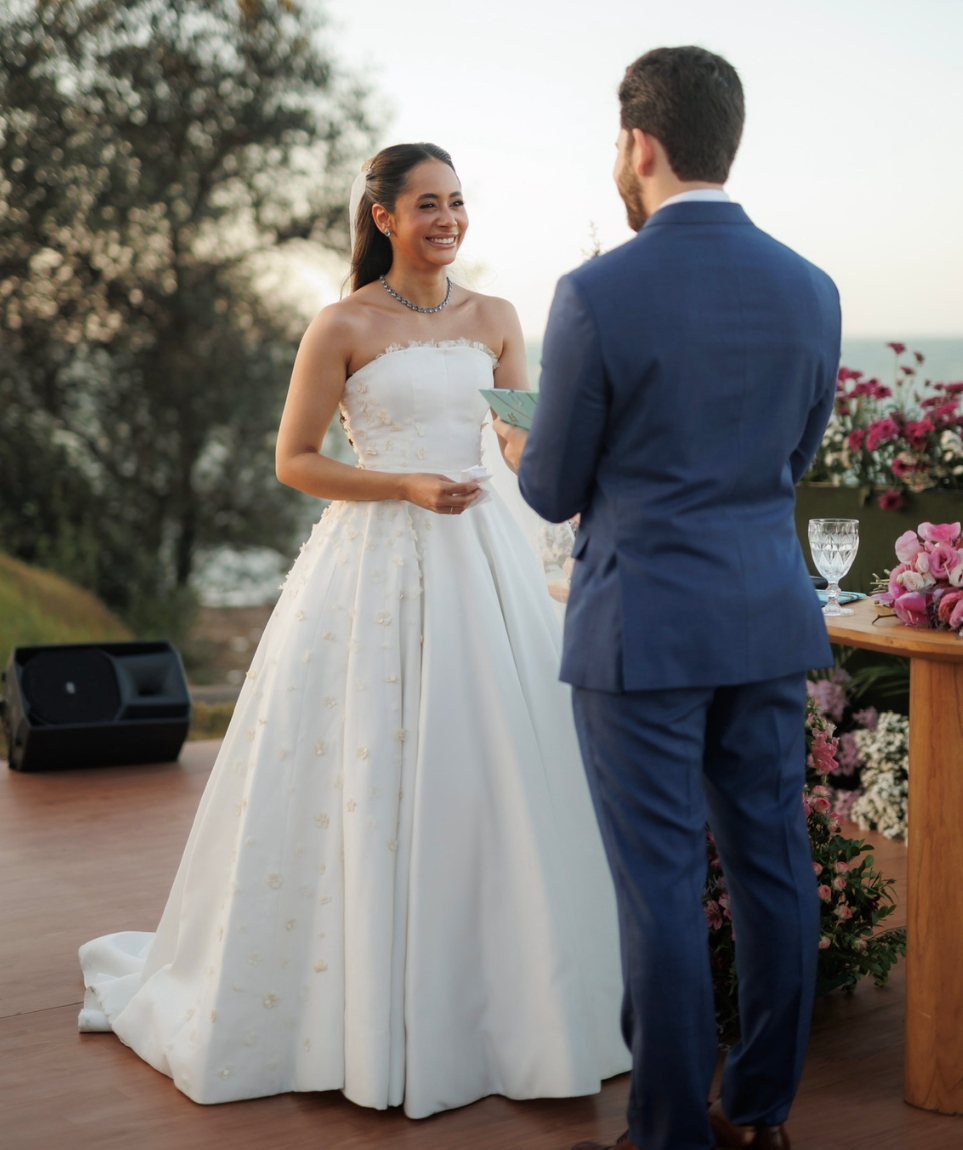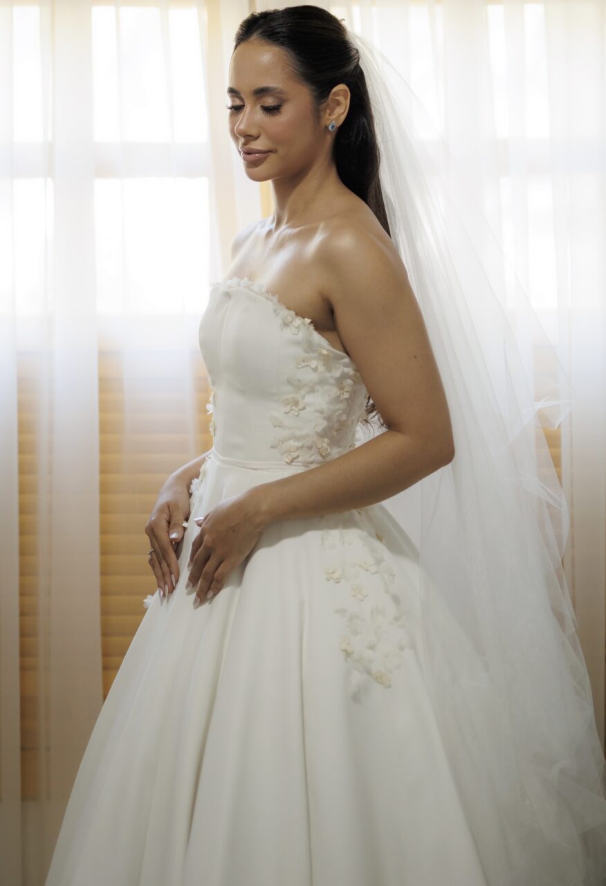 Vestido de noiva, feito pelo atelier DRESSA, na cidade de Fortaleza-Ceará. Um modelo clássico, sofisticado e atemporal, inspirado nos vestidos do estilista Carlos Back, ideal para noivas que buscam elegância e delicadeza em cada detalhe. Confeccionado em crepe parou, no tom off-white, corpete estruturado com acabamento impecável, aplicações em organza que trazem romantismo e sofisticação, saia ampla, fluida e com caimento perfeito. Acompanha véu longo, leve e delicado.