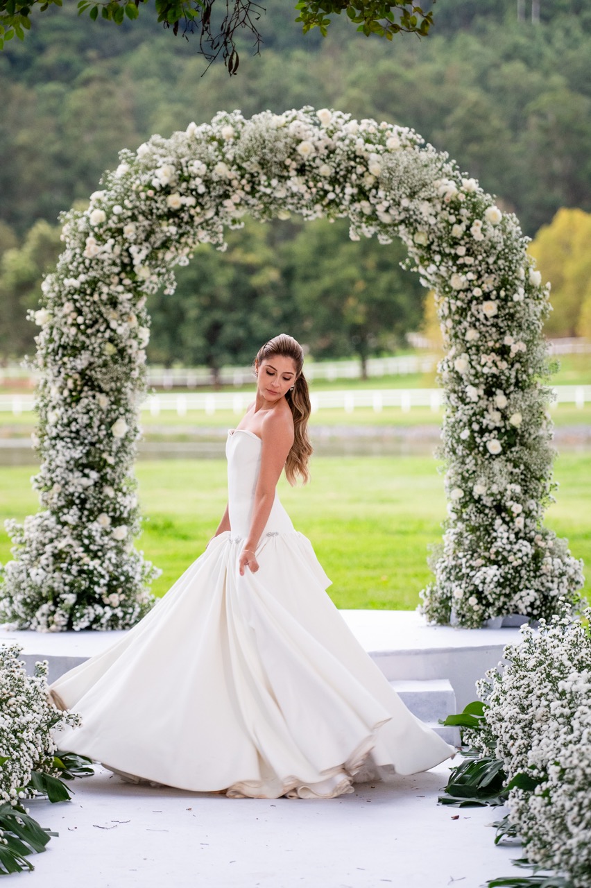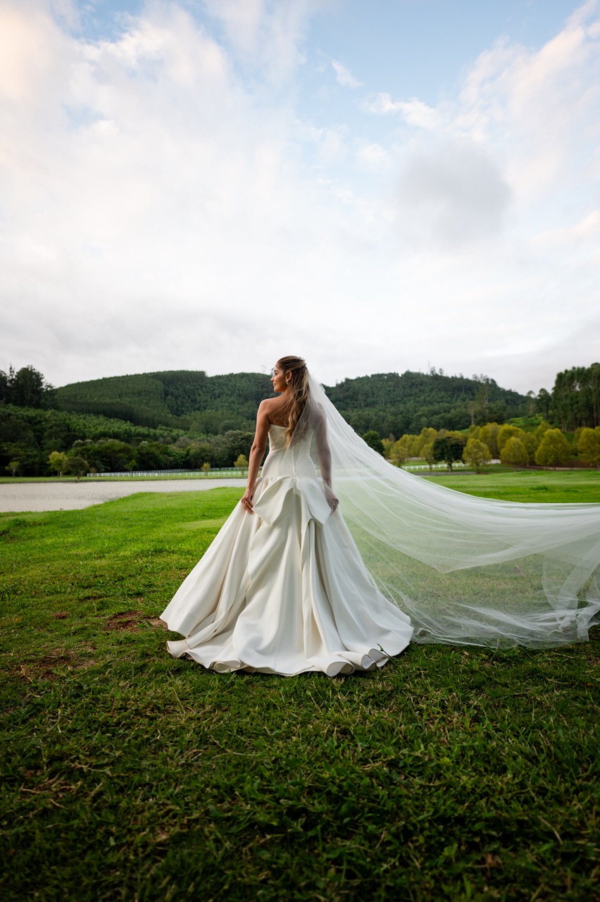 Apresenta defeito ou desgaste: O vestido foi usado apenas no dia do casamento e está sem nenhum dano ou marca.Foi lavado cuidadosamente pela Elis Noivas – lavanderia especializada em vestido de noiva e única indicação do próprio Bacchi para lavagem e conservação.Inclui caixa original Carlos Bacchi.