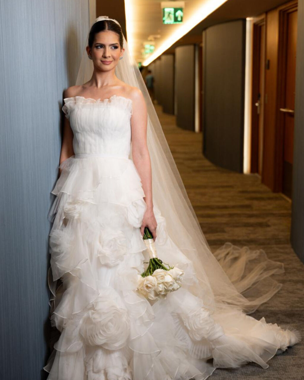 Apresenta defeito ou desgaste: Não. O vestido após o uso único foi para a Lavanderia do próprio ateliê com uma lavagem premium e especifica para os tecidos nobres. Todo e qualquer minimo reparo que tenha sido necessario pelo uso foi feito na ocasião.