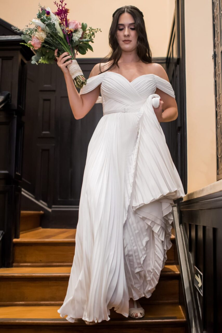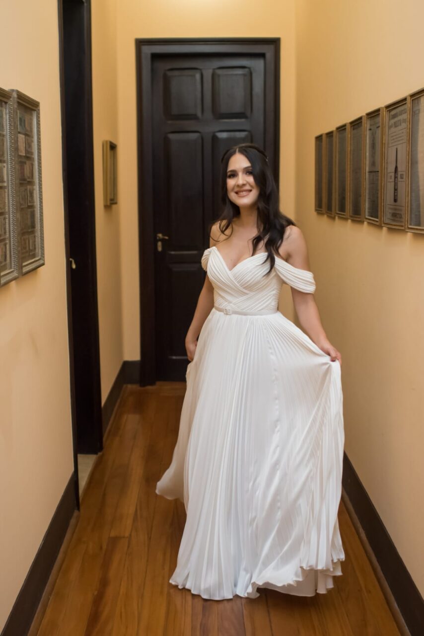 Apresenta defeito ou desgaste: Não há nenhum defeito. O vestido está lavado e impecável. Os ombros são removíveis.