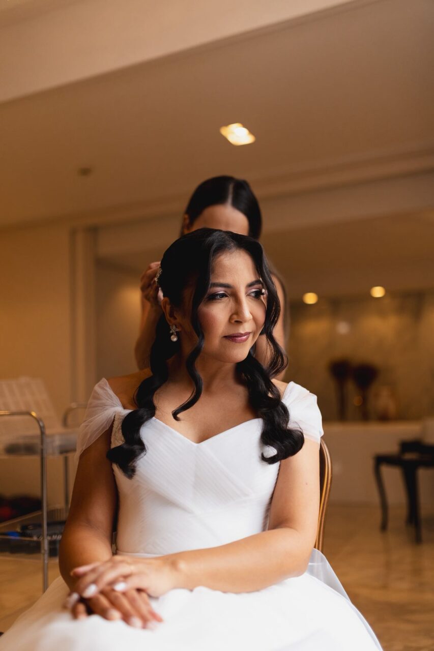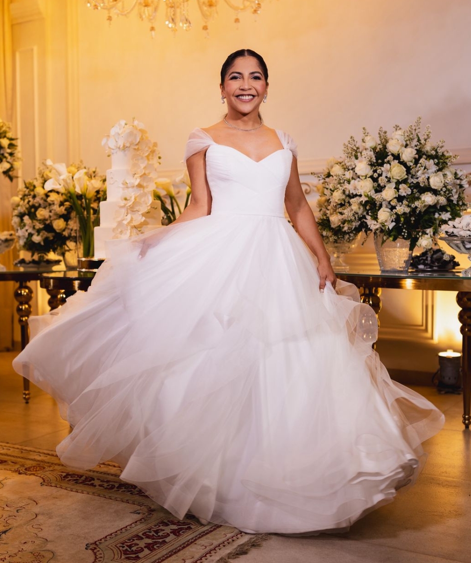 Apresenta defeito ou desgaste: Não apresenta nem deifeito nem desgaste. As alças foram feitas para serem retiradas na festa, porém eu decidi não retirar no dia do casamento. Estão costuradas com pontinhos bem leves, para não machucar o vestido, de fácil remoção. Vem com saia de enchimento (anágua) separada do vestido.
