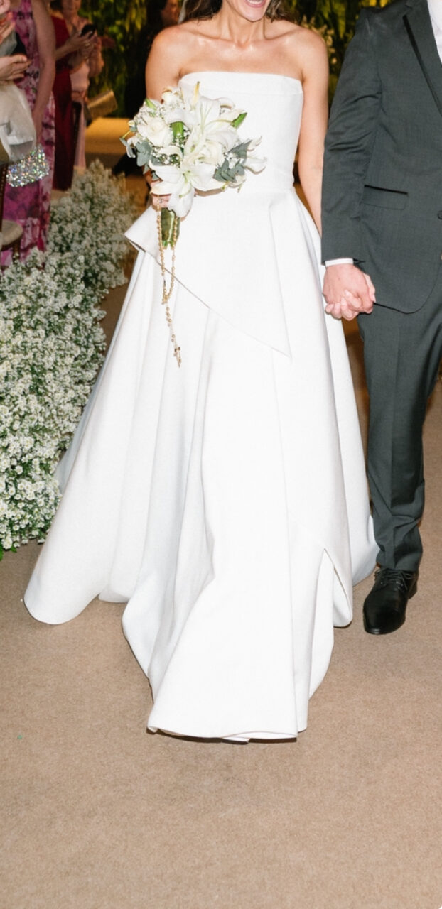 Apresenta defeito ou desgaste: Nao. Vestido lavado no dia seguinte ao uso, sem defeitos ou desgastes.