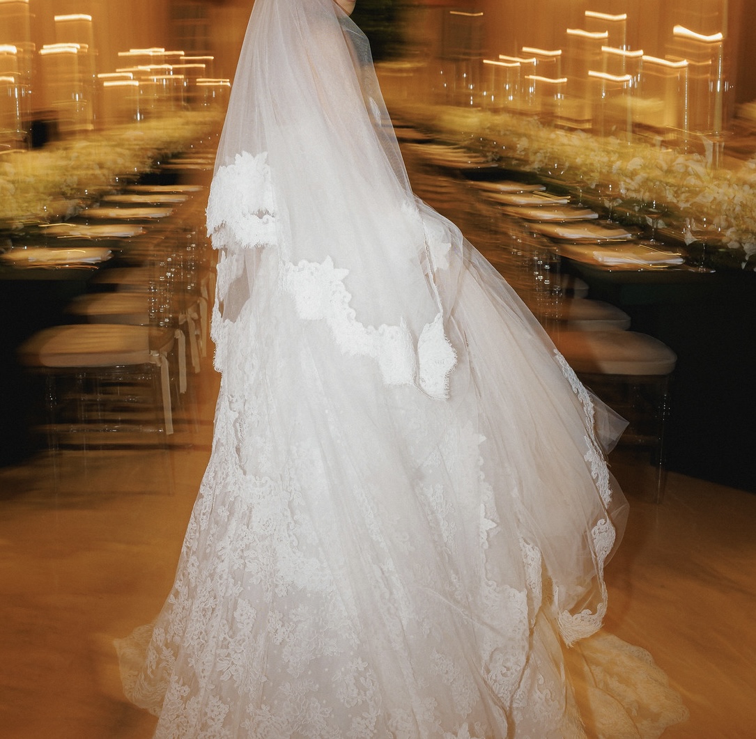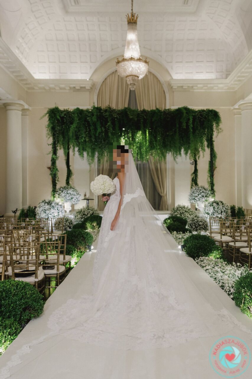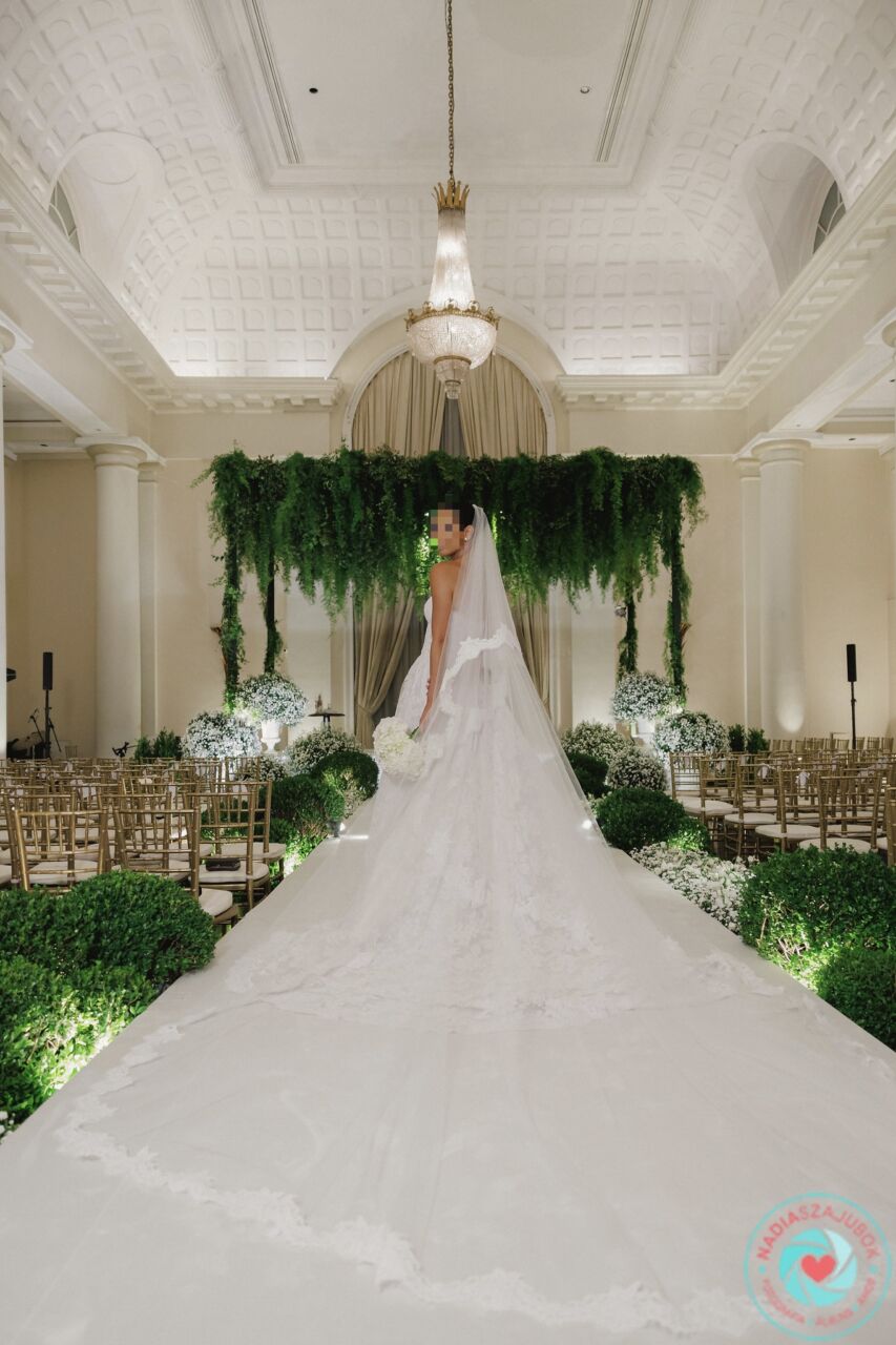 Apresenta defeito ou desgaste: O vestido esta em perfeito estado, sem nenhum marca de uso. Possui a calda de 1,5mts e os botoes para recolher caso necessario. O veu possui a mesma renda do vestido e 1,5mts para acompanhar a calda do vestido. Em baixo da renda, possui um tule de point d’Esprit, que realca o trabalho da renda importada. Possui bojo no seio e corset para dar sustentação ao vestido.