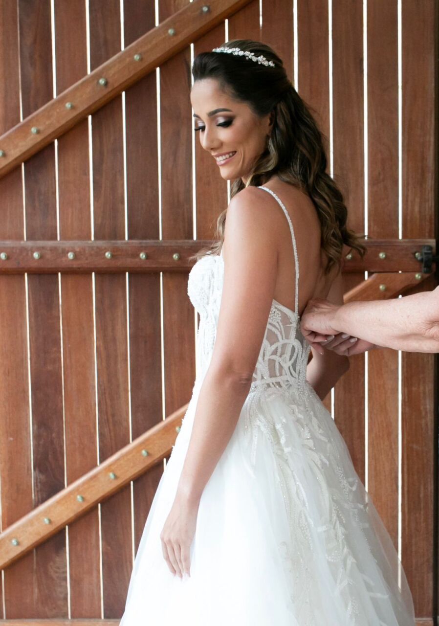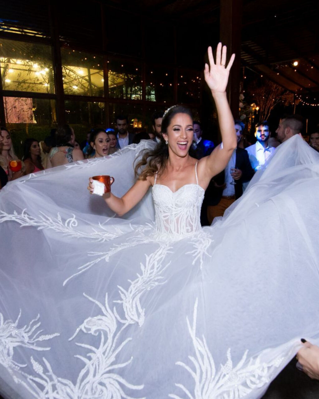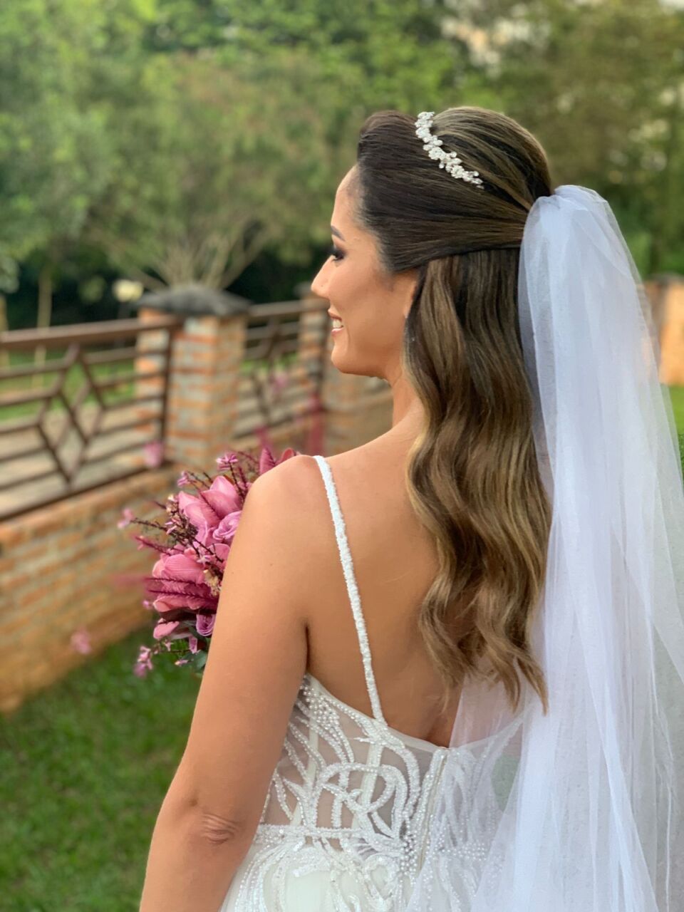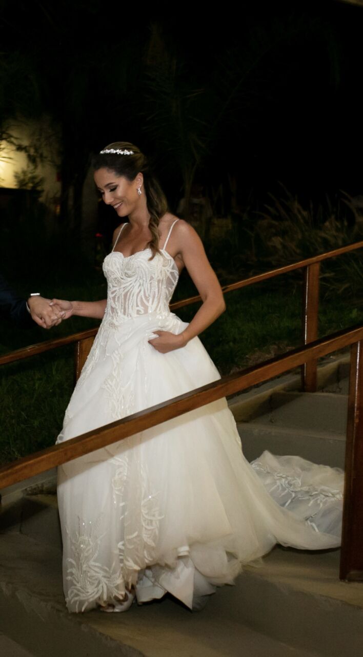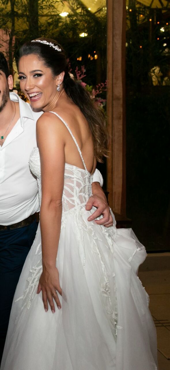 Apresenta defeito ou desgaste: Vestido todo feito em Tule delicado. Há um pequeno rasgo no tule de cauda, mas que pode ser consertado.