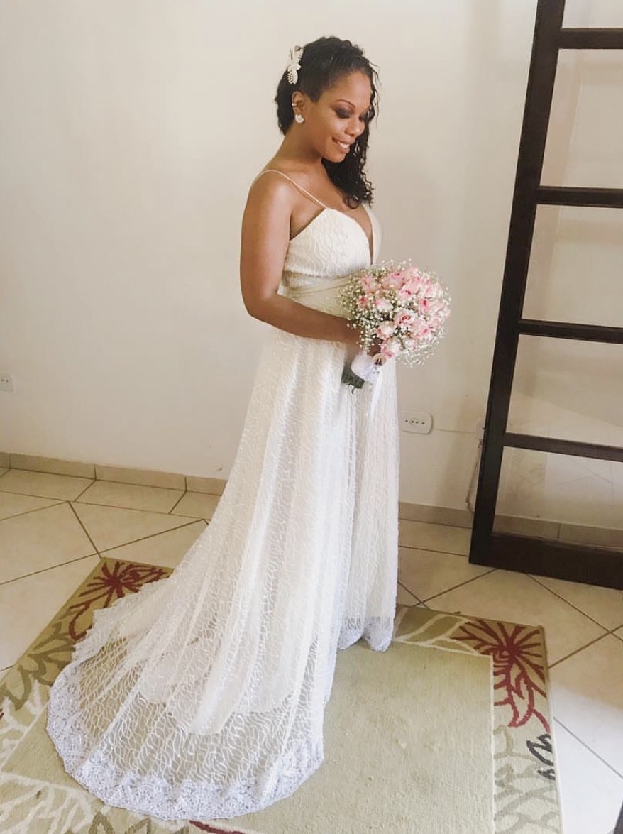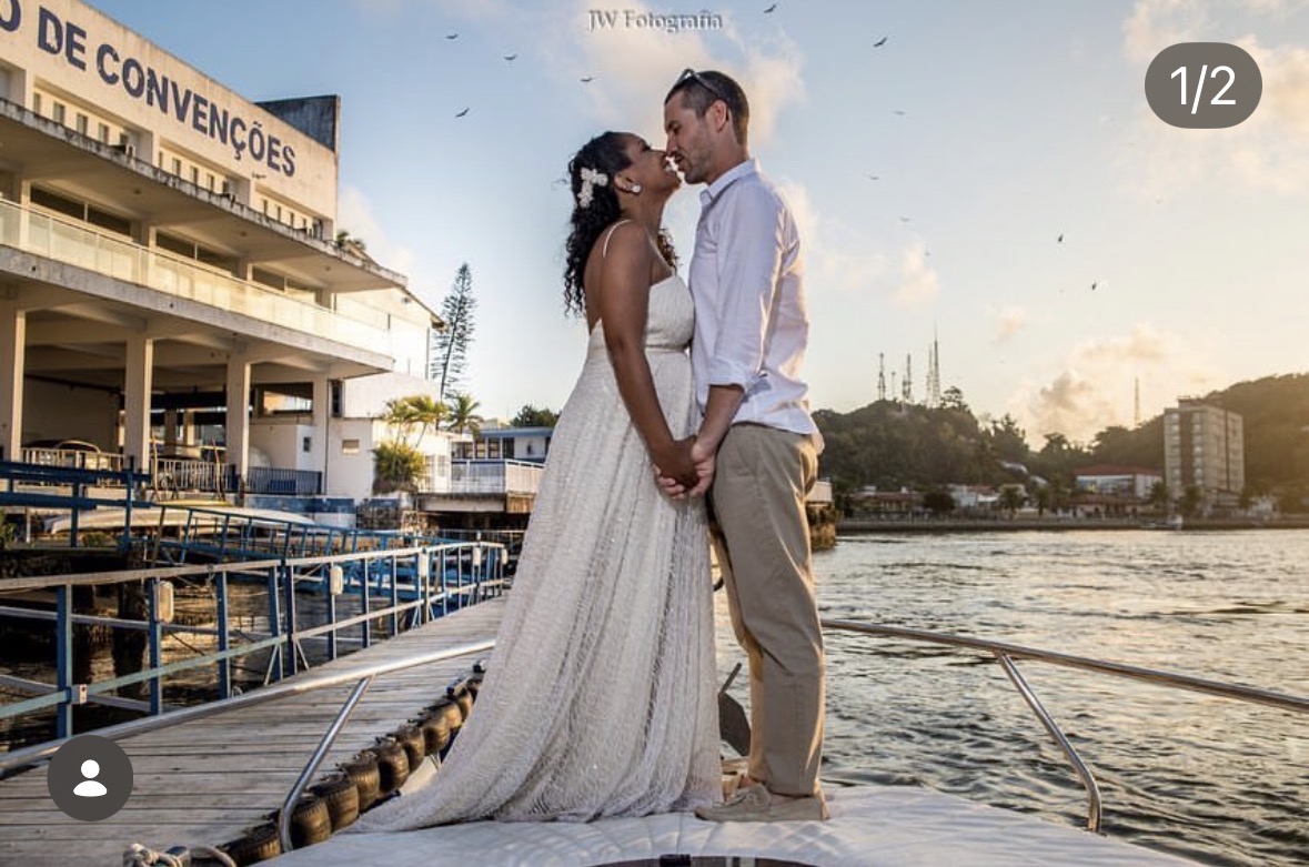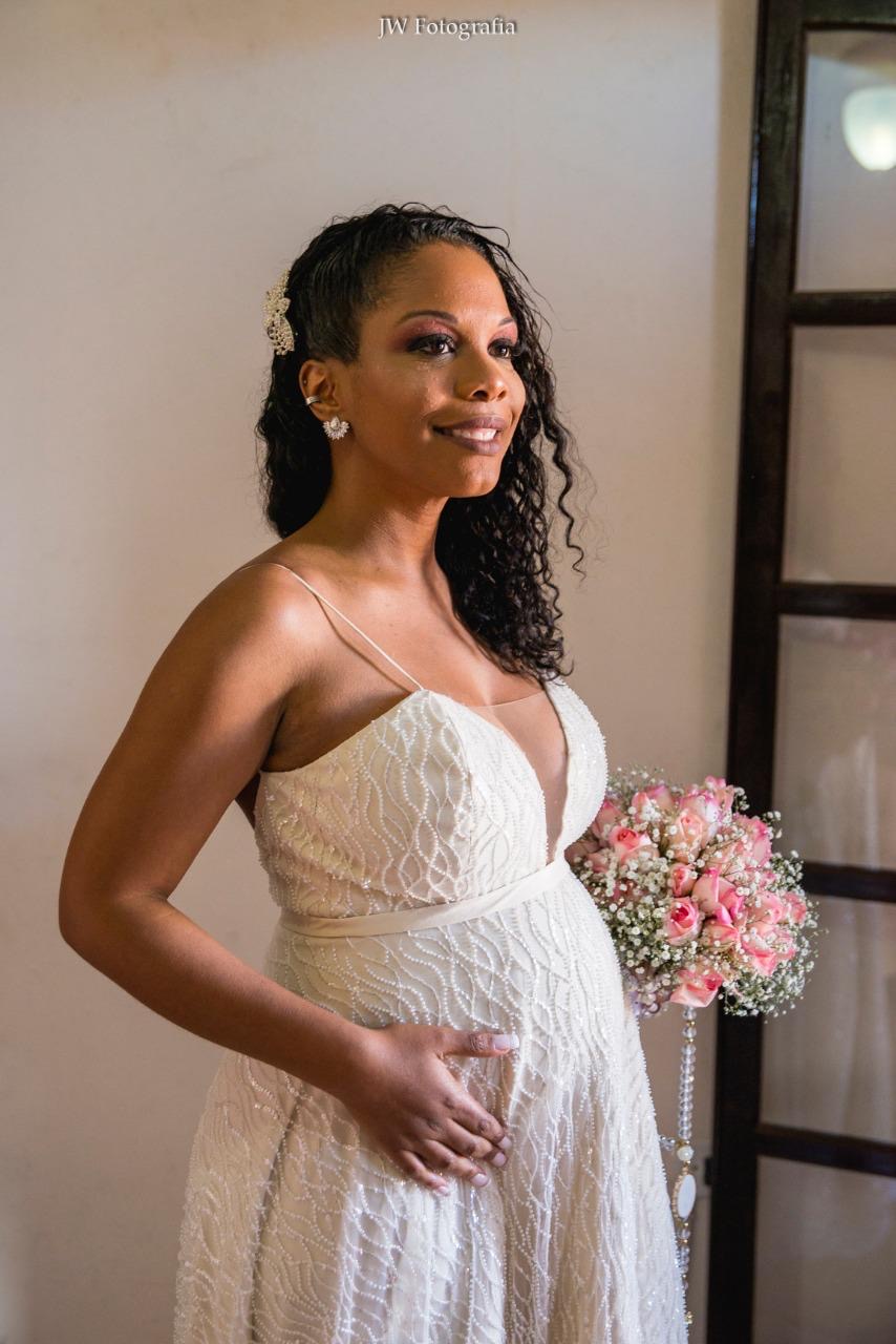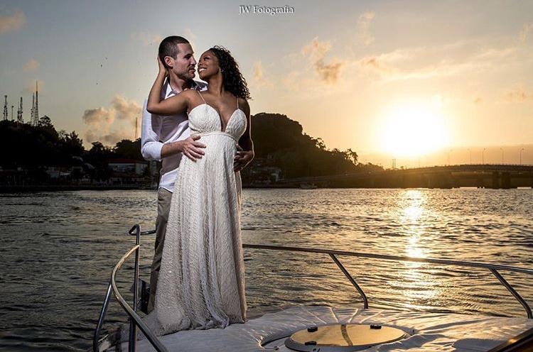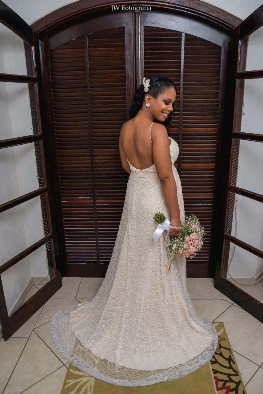 Apresenta defeito ou desgaste: Vestido utilizado apenas uma vez em um casamento na praia. Os tecidos foram criteriosamente selecionados e o bordado é impecável. Casei estava de 4 meses da minha primeira filha, mas o vestido fica solto da cintura pra baixo deixando um charme para noiva, além de muita elegância. Esse vestido foi um sonho realizado e inspirado em um vestido da Galia Lahav.