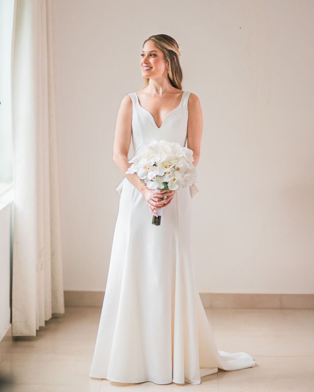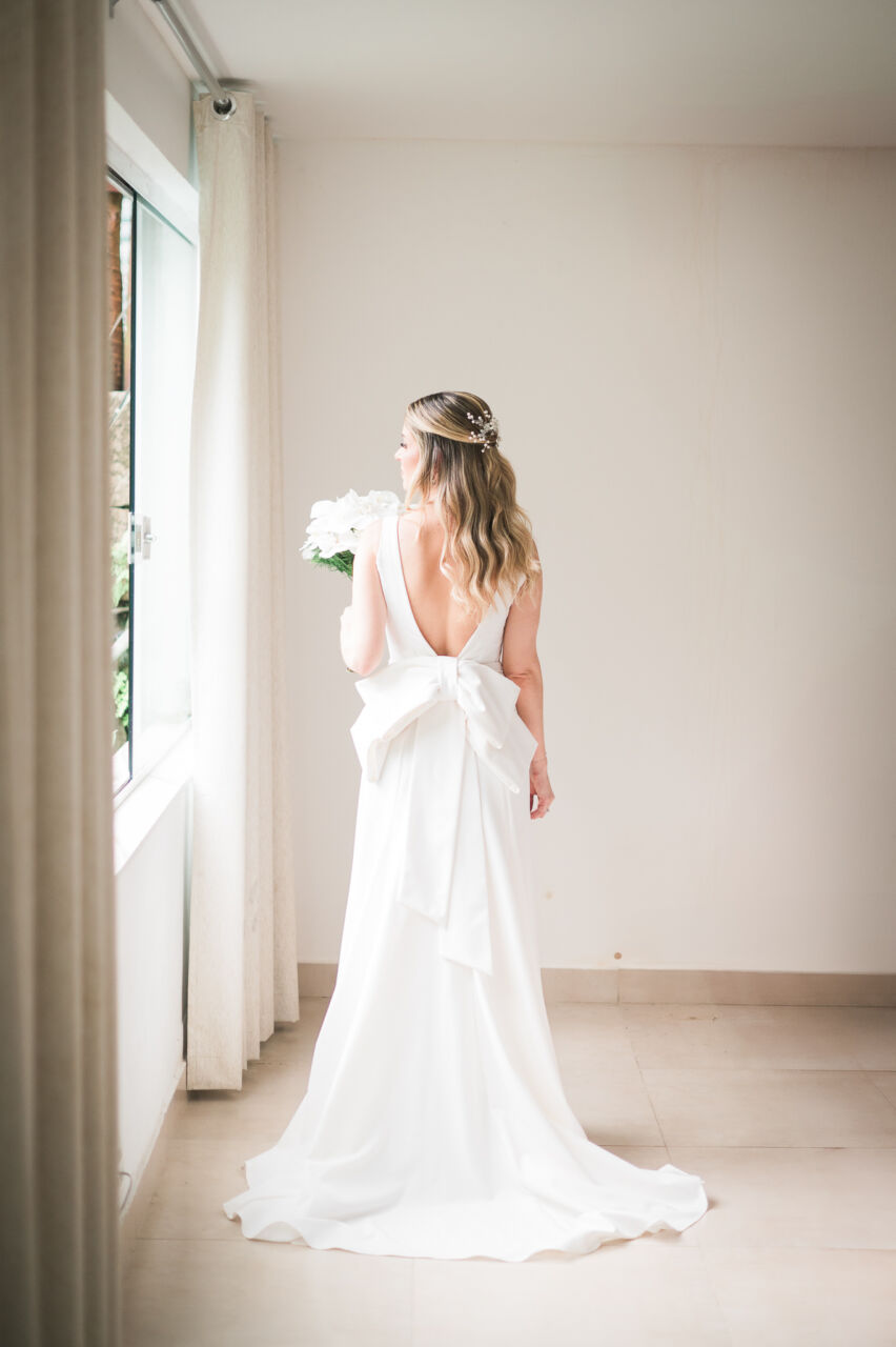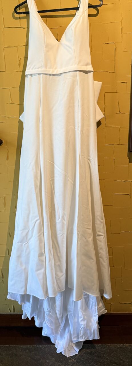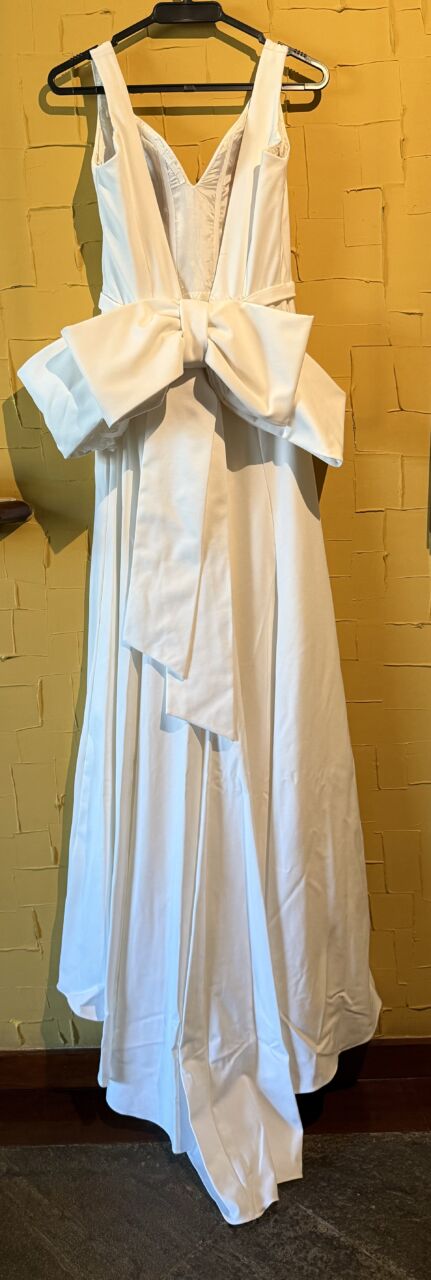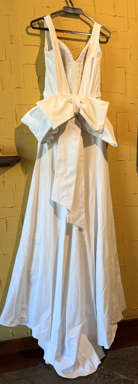 Apresenta defeito ou desgaste: Laço da parte de trás do vestido apresenta uma pequena parte que necessita de reforço na costura.