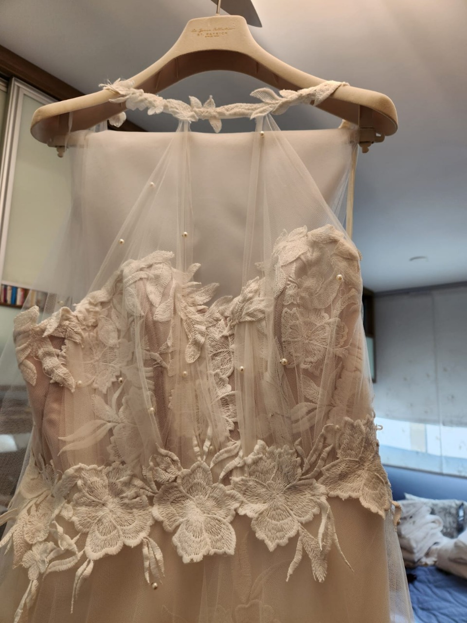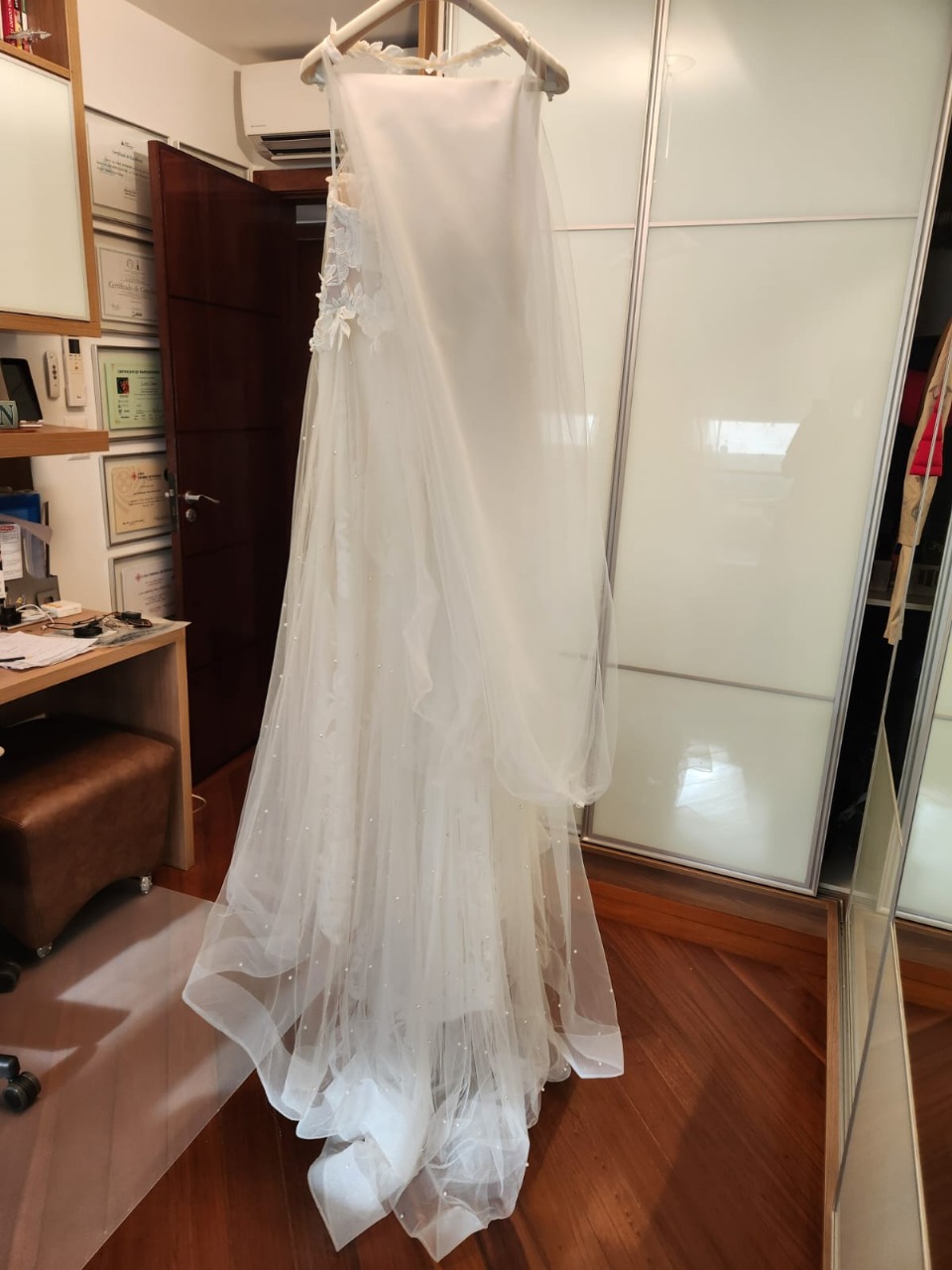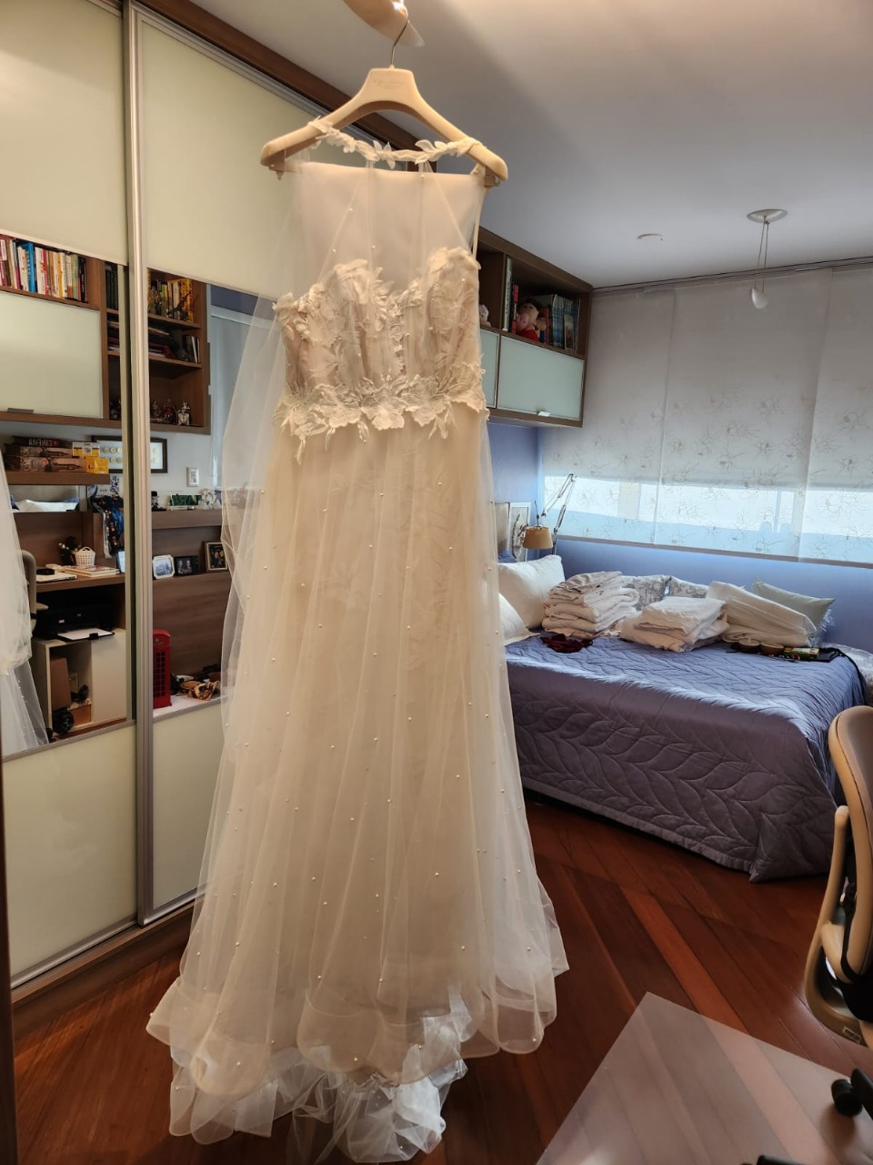 Apresenta defeito ou desgaste: Vestido de noiva da renomada marca espanhola Inmaculada García, em estilo boho chic, que une delicadeza e sofisticação. O modelo apresenta corpete estruturado em renda floral, sobreposto por tule leve com delicado bordado de pérolas que cria um efeito etéreo e romântico. A gola alta em renda valoriza ainda mais a silhueta, enquanto a saia traz renda sobreposta sob o tule bordado, garantindo um caimento fluido e cheio de movimento. É a escolha perfeita para noivas que buscam autenticidade, feminilidade e a essência artesanal da alta costura no grande dia.Vestido nunca usado. Noiva foi morar no exterior e não consegui levar. O ano informado foi, na verdade, o ano de compra.Sem defeitos.