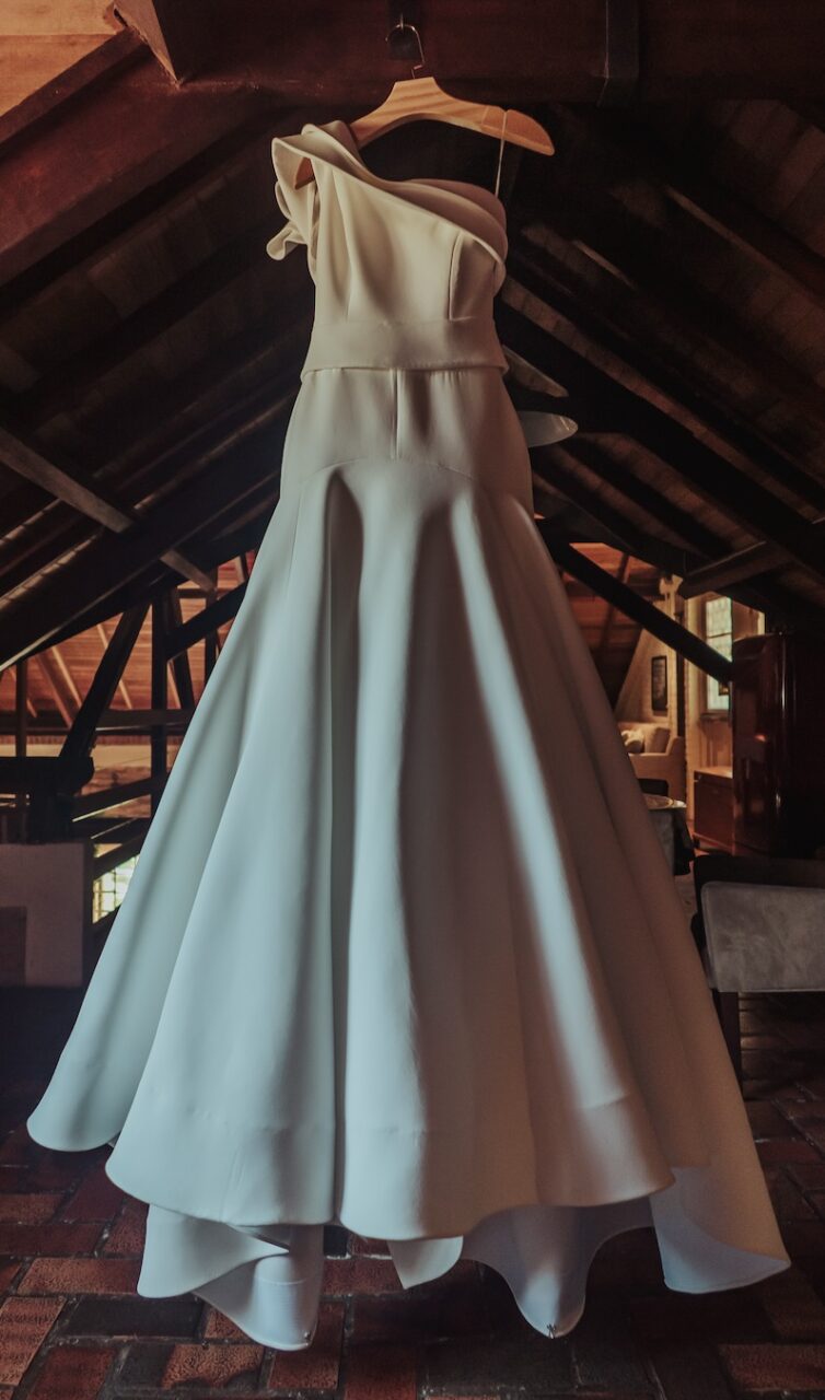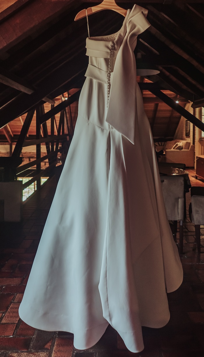 Apresenta defeito ou desgaste: 1 dos 3 ganchos que segura a cauda do vestido está quebrado. Vestido em perfeito estado, lavado em lavanderia especializada 2 dias após o casamento.