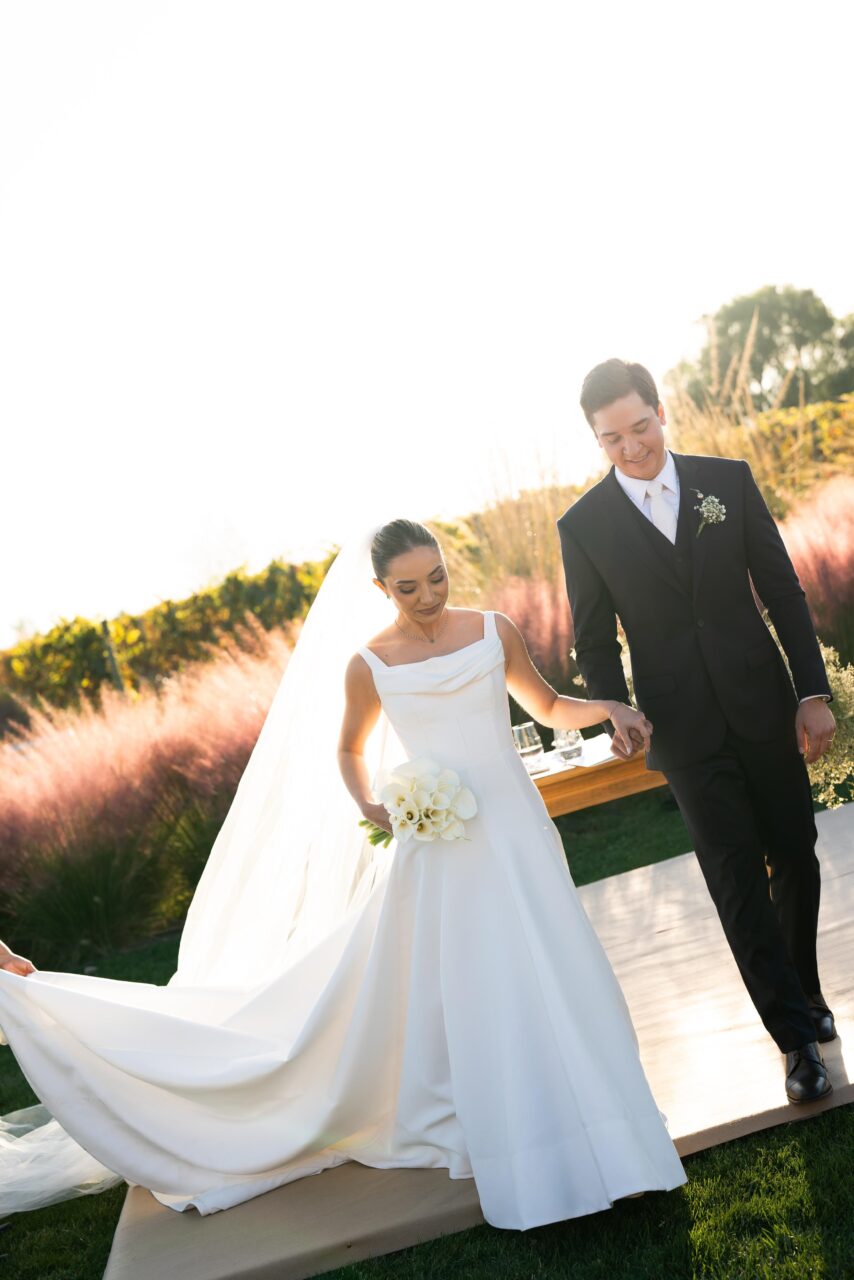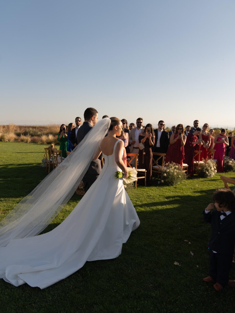 Apresenta defeito ou desgaste: Não Vestido de noiva feito sob medida decote quadrado, com pregas no busto, shape saia em nesgas. Decote costas. Véu liso incluso.Tecido plano levemente acetinado, sem bordados.