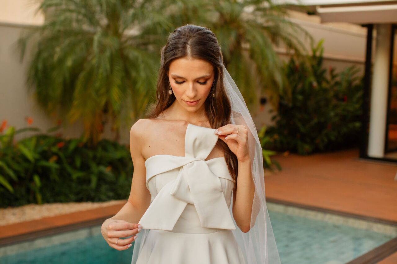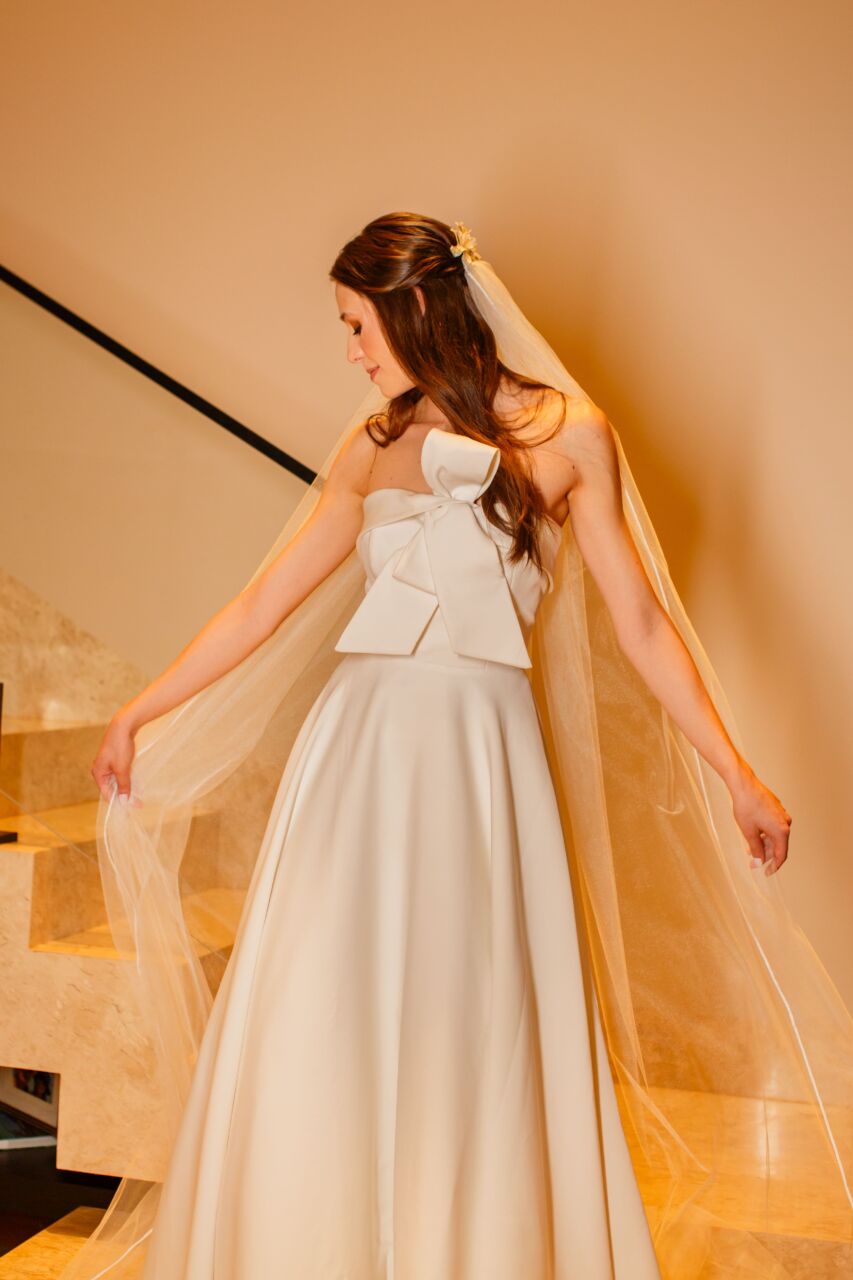 Apresenta defeito ou desgaste: Vestido de noiva martinah couture em alfaiataria, mistura perfeita entre o clássico e o moderno.