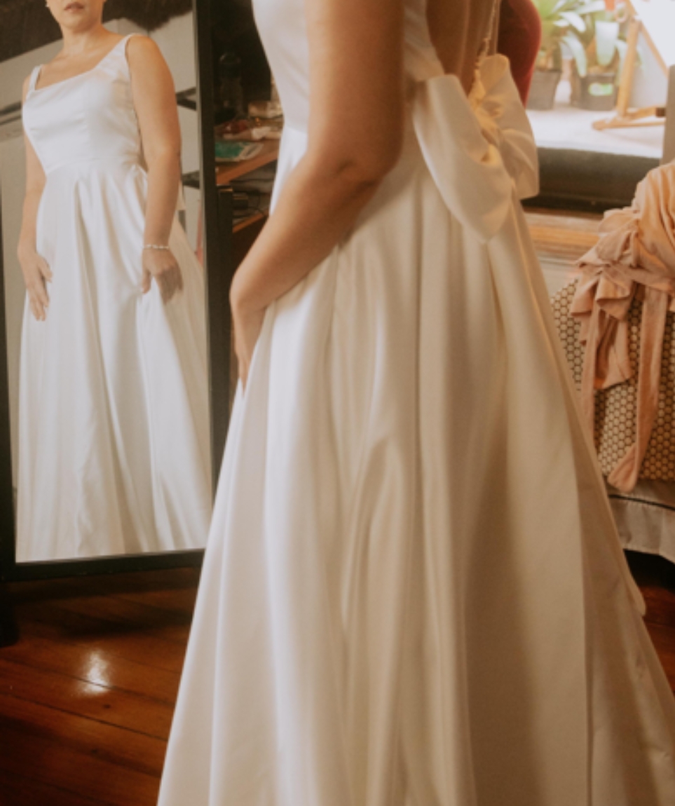 Apresenta defeito ou desgaste: Perfeita condição, higienizado e passado logo apos o uso. Laço incluso.