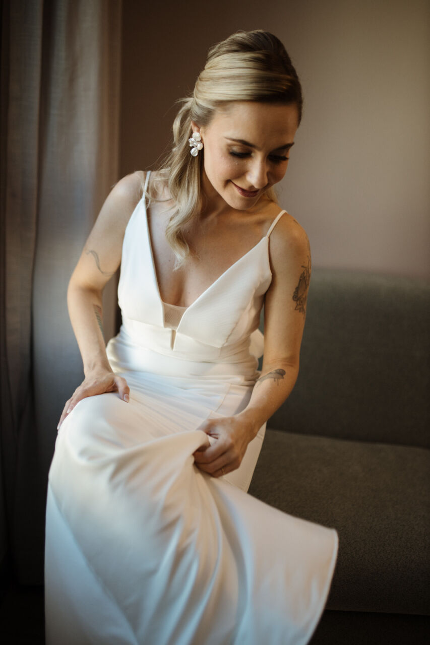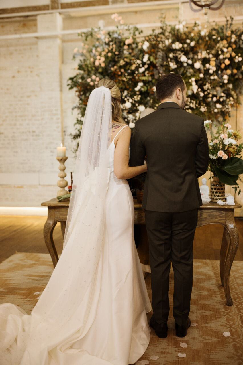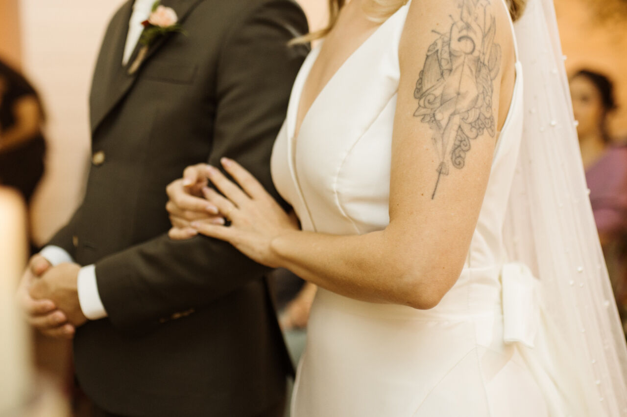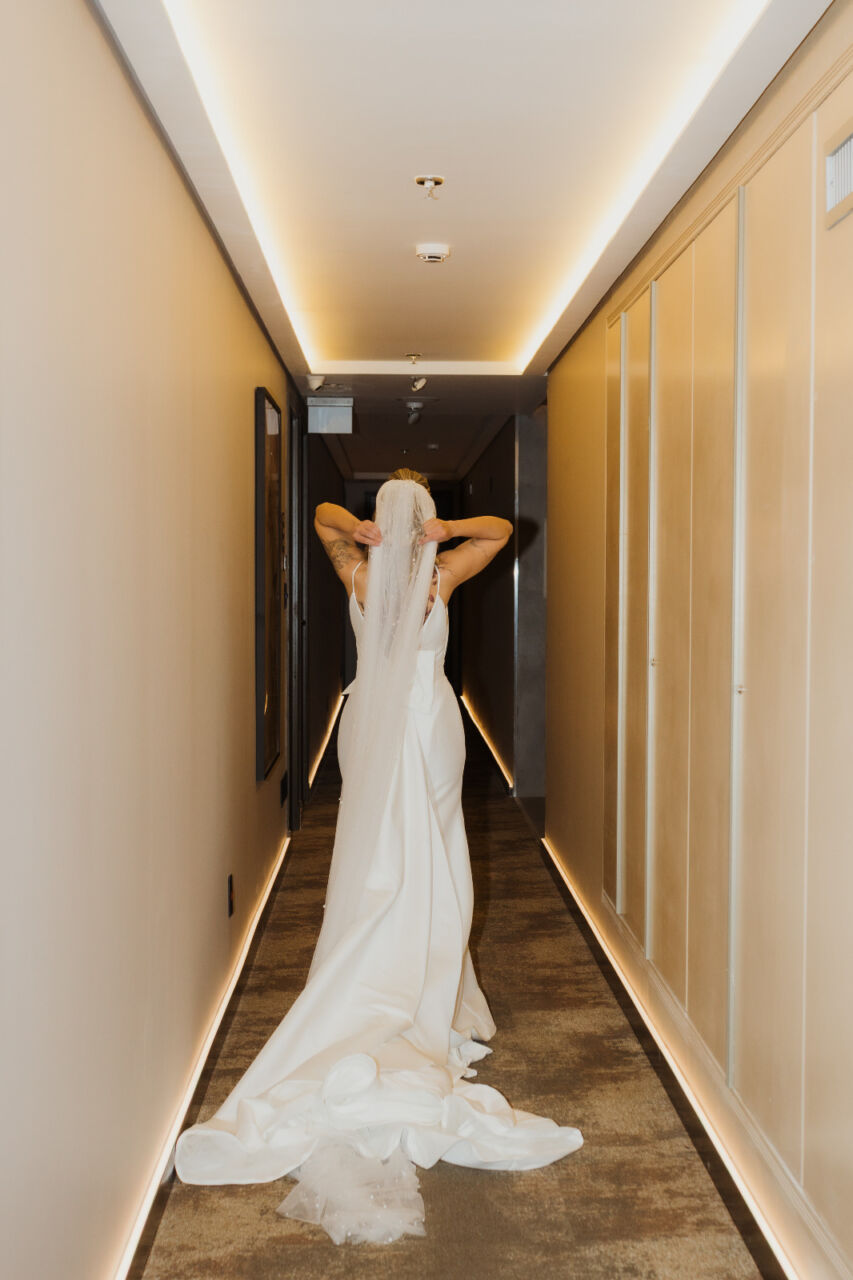 Apresenta defeito ou desgaste: Não, vestido está perfeito, lavado e passado. Ele possui uma cauda removível e quando fiz a barra, pedi para a costureira deixar uma folga de uns 10cm, e nas laterais também pedi para ela deixar uma ‘sobra’ caso fosse necessário ajustar futuramente. Fiz os ajustes na Eu Noiva Atelier (ela tem o histórico do que foi feito)