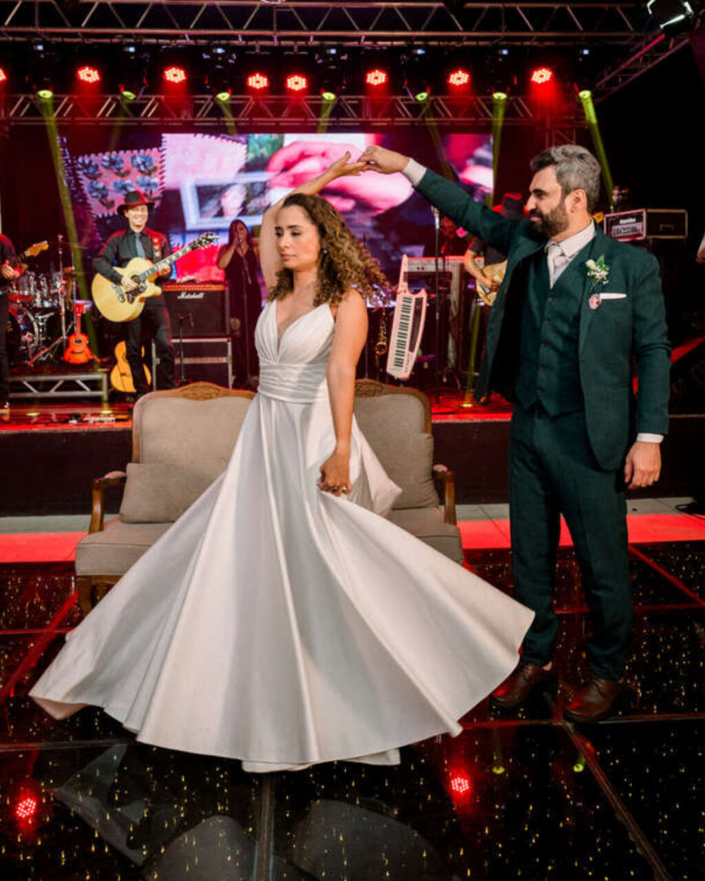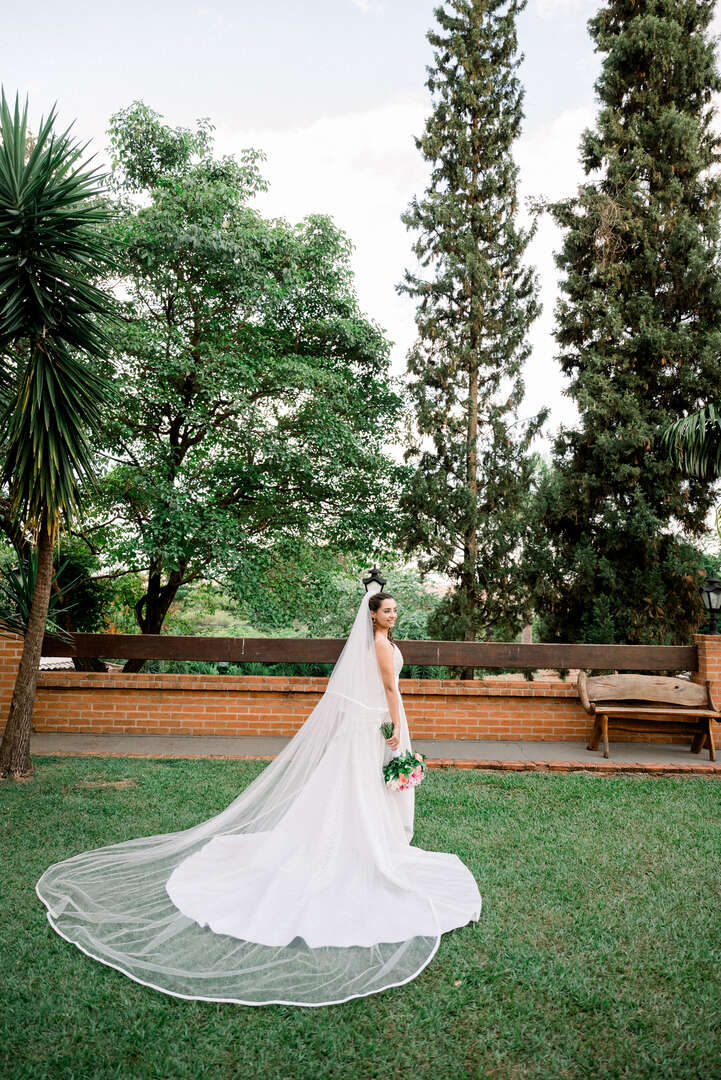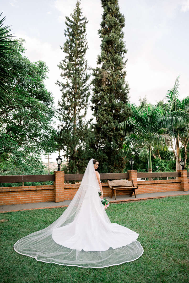 Apresenta defeito ou desgaste: Vestido em perfeito estado, acompanha véu e laço (opcional utilização) tem tecido para soltar, tem bolsos e acompanha capa e cabebide.