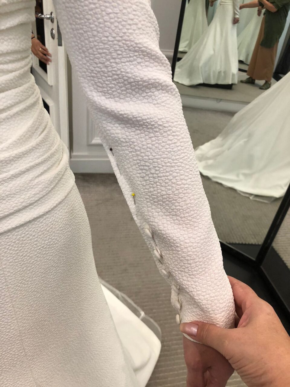 Apresenta defeito ou desgaste: Não apresenta quaisquer desgastes ou defeitos. O vestido está lavado e bem armazenado desde seu primeiro e único uso.