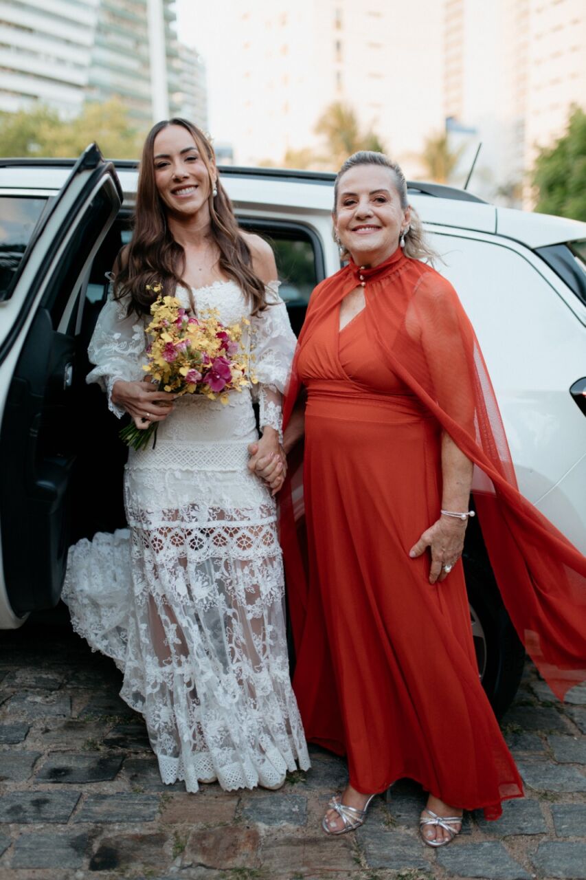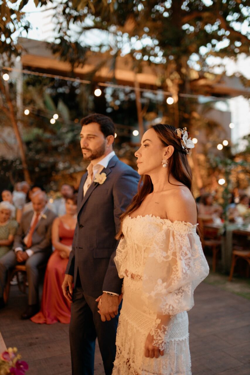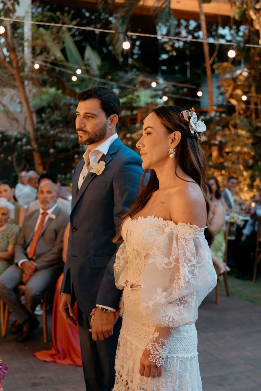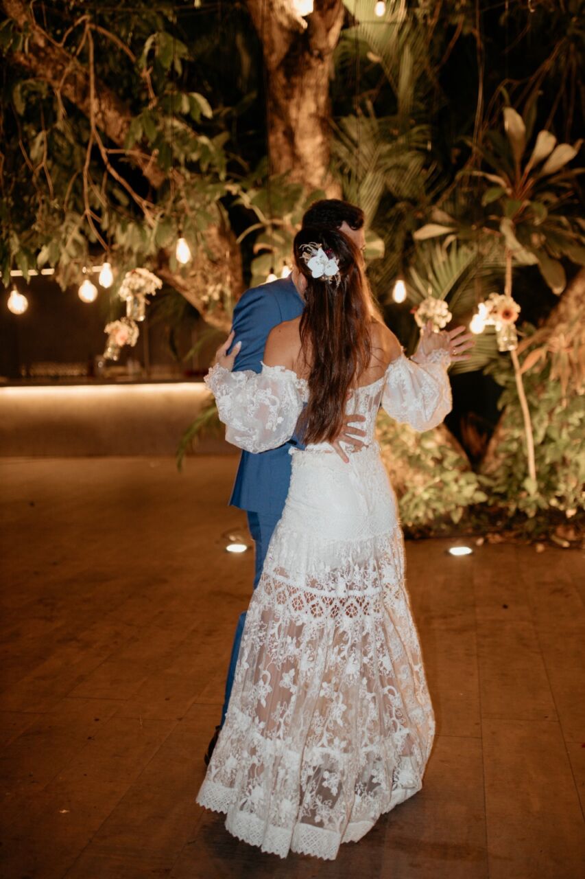 Apresenta defeito ou desgaste: O vestido foi usado apenas uma vez em dezembro de 2025, apresenta pequena avaria na barra, com discretas manchas. Não apresenta rasgos. É um vestido completamente bordado a mão, muito delicado, excelente para casamentos no campo. Veste bem manequins número 36.Fiz ajuste para o meu corpo e disponibilizo renda extra para se forem necessários ajustes.